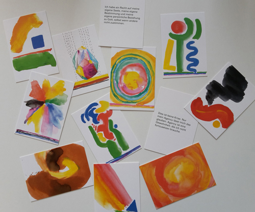 Res Leuschner hat jede der 12 Agency-Mantras in seine eigene Bildsprache übersetzt und dazu wunderschöne Karten gestaltet, auf denen auf der Rückseite das dazugehörige Agency-Mantra notiert ist.